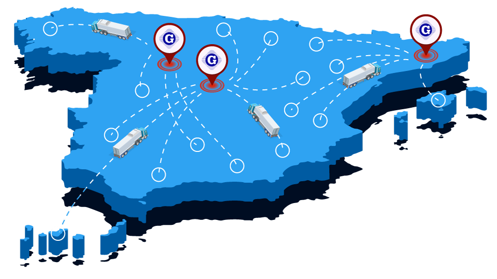 Contamos con base para nuestros vehículos en Valladolid, Madrid y Barcelona desde los cuales hacemos rutas por toda España. Nuestra sede central de operaciones se encuentra en Valladolid.